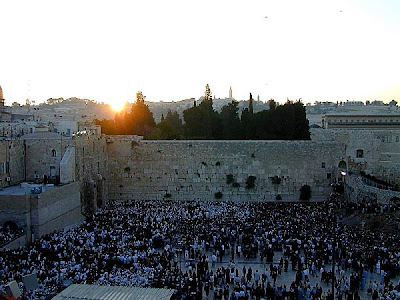 Tausende versammeln sich am Morgen von Schavuot vor der Kotel (Klagemauer) und beten das Morgengebet Schacharit.B"H